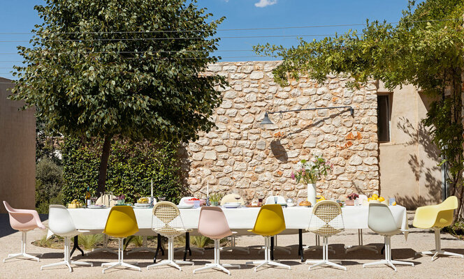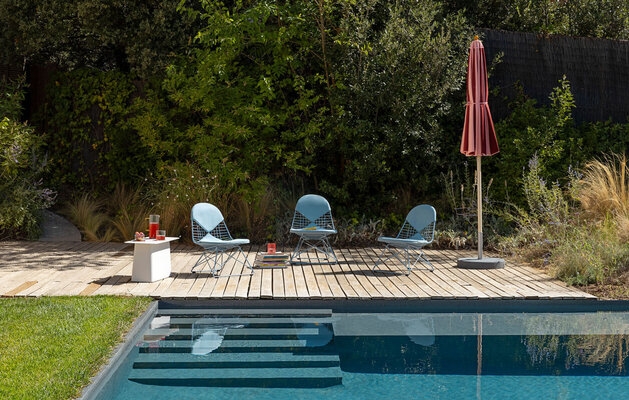 Der Eames Shell Chair mit La Fonda-Gestell ist eine ikonische Ergänzung für Ihr Sommer-Setting und mit einer pulverbeschichteten Oberfläche erhältlich, die sich auch für den Außenbereich eignet. Entdecken Sie den PantonChair in allen Farben und wählen Sie Ihren idealen Begleiter für entspannte Sommertage im Freien. Der niedrige Sockel verleiht den Eames Shell Chairs eine neue Vielseitigkeit, ideal für entspannte Stunden am Pool. Ein Outdoor-Update für einen Klassiker: Eames Wire Chairs können jetzt mit dem „Bikini”-Polster ausgestattet werden, das für komfortablen Gebrauch im Freien entwickelt wurde. Für das Essen im Freien sorgt der Belleville Chair mit Kunststoffsitzschale für Komfort und eine raffinierte Silhouette am Tisch.