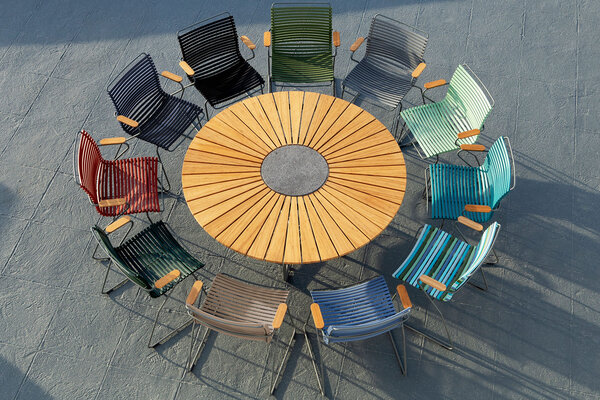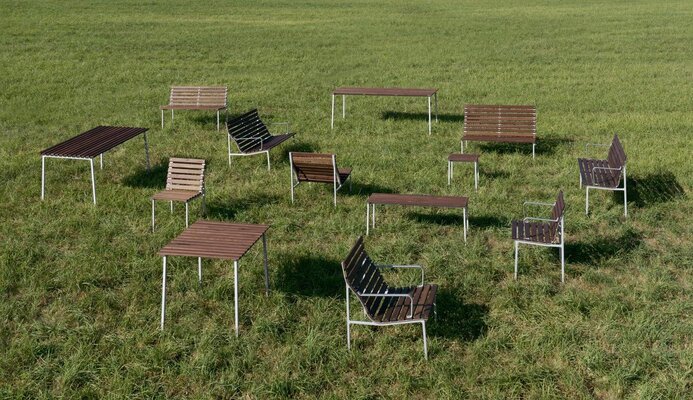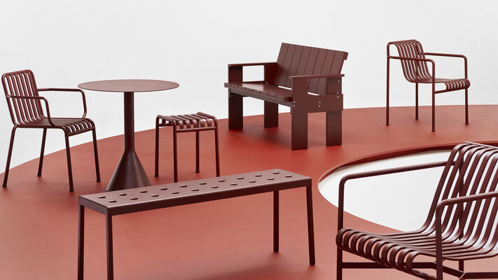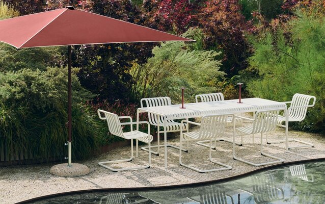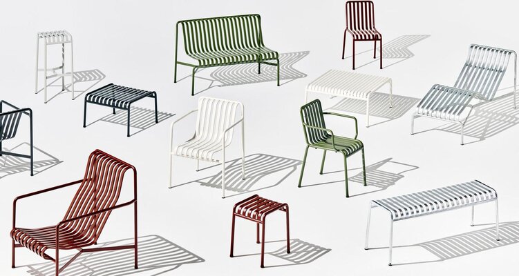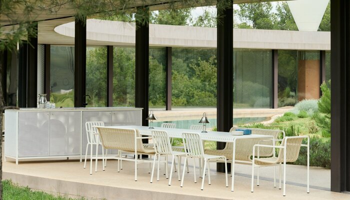 Neuheiten vom Hersteller HAY: Die Palissade Cord Kollektion interpretiert die ikonische Palissade-Gartenmöbelserie der französischen Brüder Ronan und Erwan Bouroullec neu. Die symmetrische Formensprache der Original-Palissade bleibt erhalten, doch recyceltes Polyestergarn wird von Hand auf den Stahlrahmen gewebt und verleiht den Möbeln eine weichere, entspanntere Optik. Die Kollektion umfasst einen Esszimmer-Sessel, eine Esszimmerbank, einen Lounge-Sessel, ein Lounge-Sofa und eine Chaiselongue in Farben, die den bestehenden Palissade-Varianten entsprechen. Sie eignet sich ideal zum Entspannen, Essen und geselligen Beisammensein in unterschiedlichsten Außenbereichen.