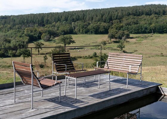 Die Traverse Kollektion Entworfen von Erwan Bouroullec für HAY, ist Traverse eine Outdoor-Möbelserie, die sich harmonisch in jede Umgebung einfügt. Die Möbel bestehen aus einem Aluminium-Druckgussrahmen mit Latten aus wärmebehandelter Esche und vereinen robuste Konstruktion mit einer einladenden Optik, die mit der Zeit durch eine natürliche Patina noch schöner wird. Dank ihrer ausgewogenen Ästhetik und des ergonomischen Designs lässt sich die Traverse-Kollektion mit Stühlen, Tischen, Bänken und einem Hocker mühelos in unterschiedlichste private und öffentliche Bereiche integrieren.