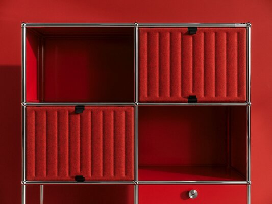 Das neue USM Haller Soft Panel ergänzt die Produktpalette von USM um eine weiche und spielerische Note. Die textilen Panels sind mit vier Magneten versehen und lassen sich ganz einfach in die Rohrstruktur des Möbelbausystems klicken – ohne Montageaufwand oder zusätzliche Vorrichtung. Genauso locker lassen sie sich nach oben oder unten aufklappen und in das nächste Fach flippen. Der Magnetismus sorgt für ein ganz neues Erlebnis: playful, soft, easy.